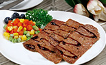 精選排酸牛外脊或牛眼肉高端部位肉,肉質細嫩,香甜多汁,不干澀。