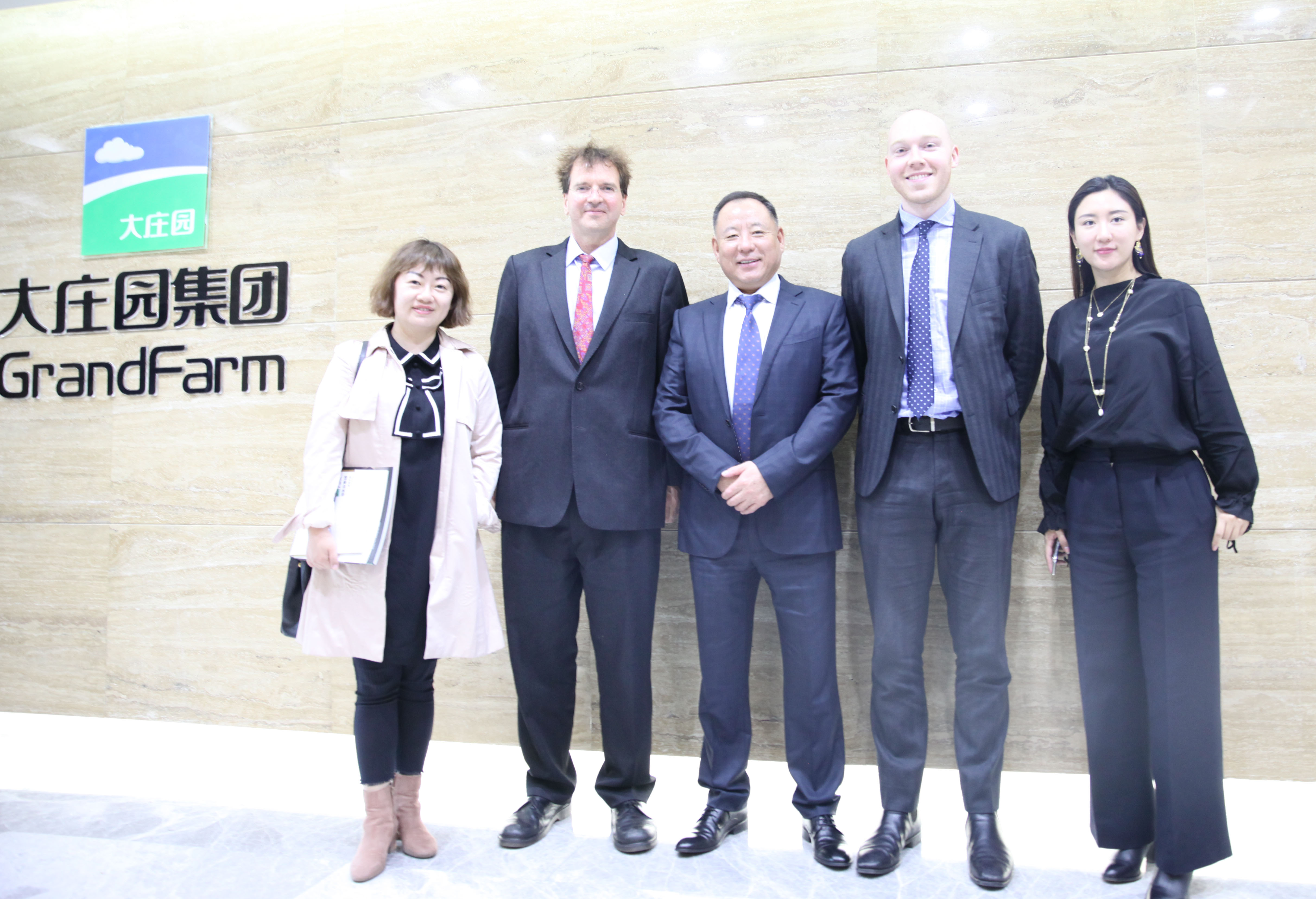 4月19日,首任澳大利亞駐沈陽總領事館總領事陳一白(Broughton Robertson)、澳大利亞駐沈陽總領事館領事白宇軒(Luke Coates)、澳大利亞駐沈陽總領事館商務處首席商務代表于丹(Fiona Yu)一行訪問了大莊園集團總部。
