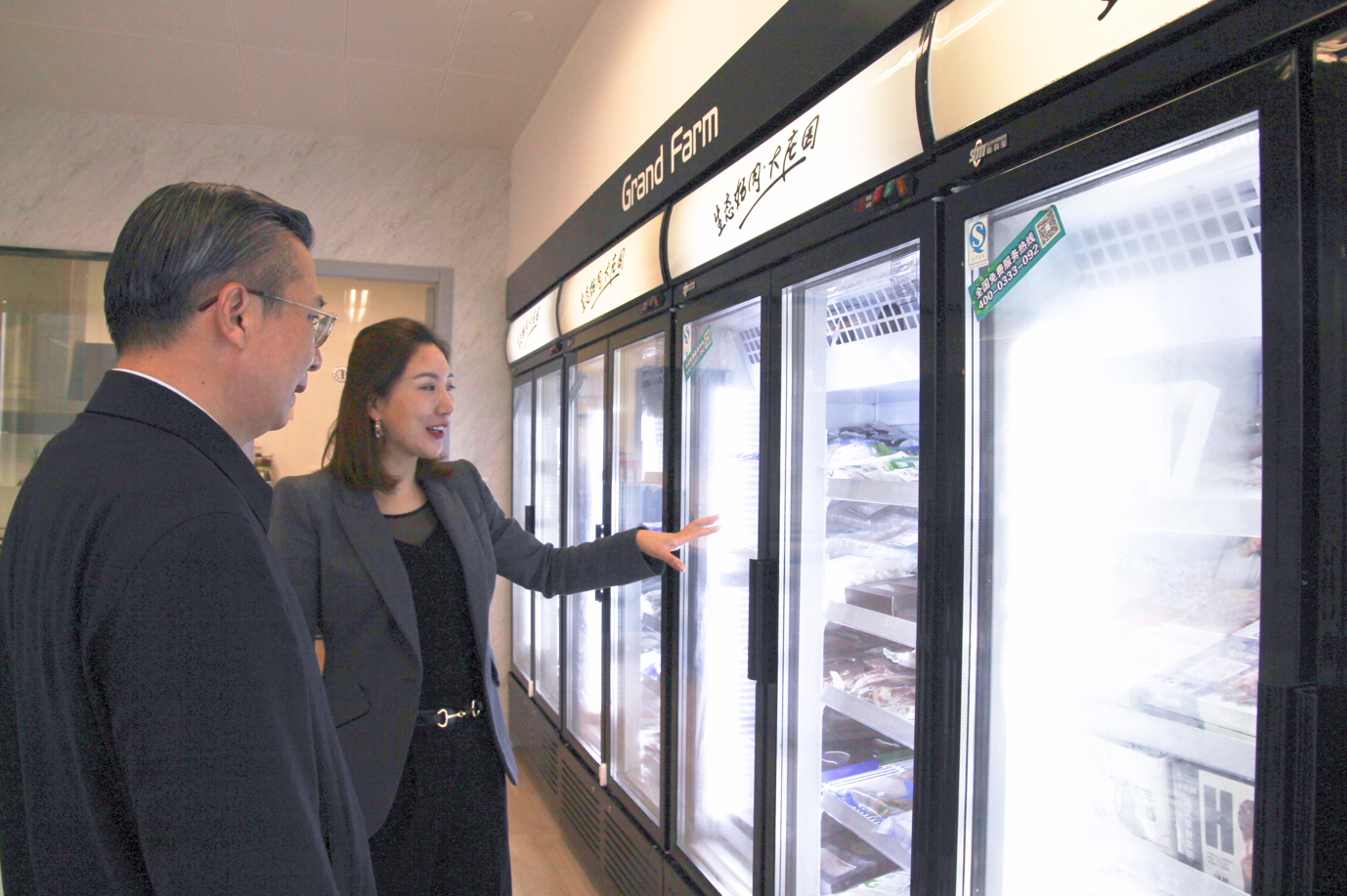 王永康副省長觀看了大莊園宣傳片,對大莊園深耕牛羊肉市場四十年,堅持企業發展的長期理念不動搖表示肯定,同時對企業不斷調整產品結構,延伸價值鏈,提升附加值的努力表示贊同。